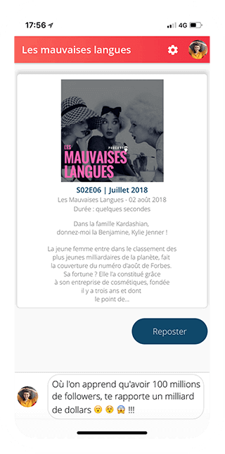 Travail important d’UX pour encourager l’échange entre podcaster et utilisateur.