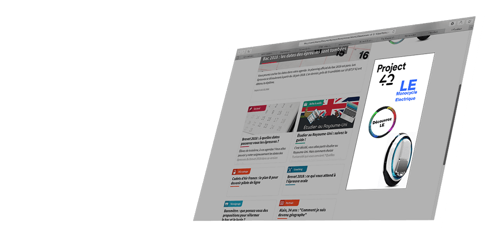 Réalisation d'un pavé, d'un half-page et d'une large bannière pour promouvoir le nouveau monocycle électrique.